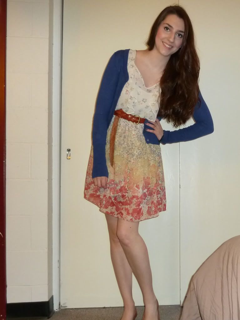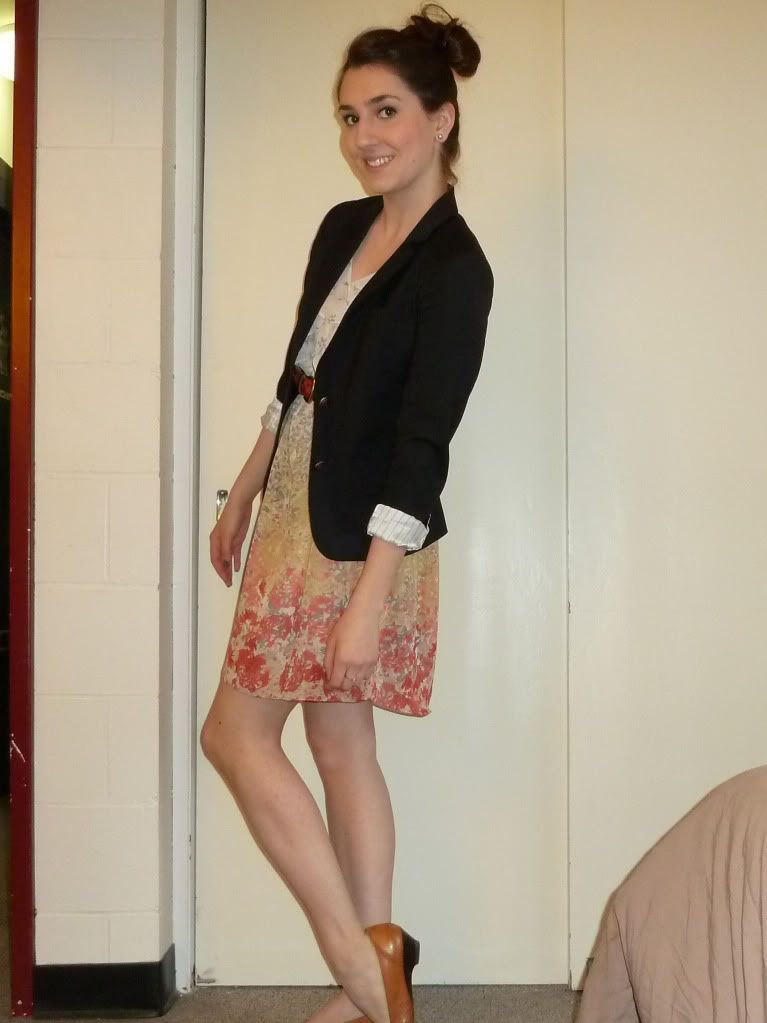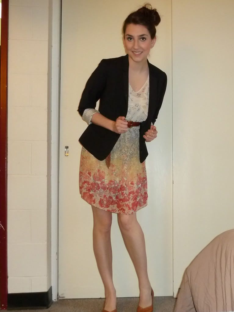 {Dress: Kohl's, Cardigan: Hollister, Blazer: TNA via Aritzia, Shoes: vintage}