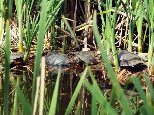 I think I may have magical powers. No matter where I go, if there's a pond nearby, I'll find a turtle. In this case, I found five - they just didn't all fit into the frame. Magical.