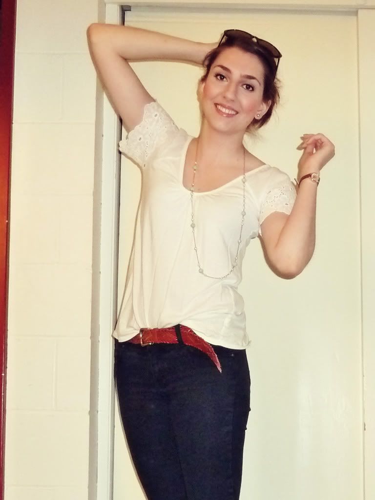 {Blouse: Roxy, Jeans: Big Blue, Sandals: Nine West, Necklace: F21, Belt: thrifted, Watch and Shades: Aldo}