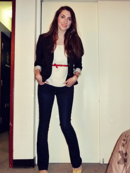 {Cami: Target, Blazer: TNA via Aritzia, Jeans: Citizens of Humanity, Shoes: Payless, Belt: vintage}