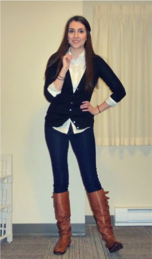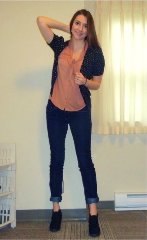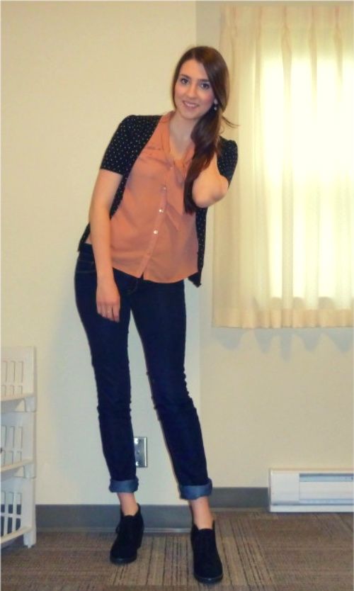 {Blouse: H&M, Cardigan: Old Navy, Jeans: American Eagle, Shoes: Aldo}
